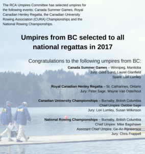Congratulations to the umpires from BC who will be involved in these 2017 national regattas.